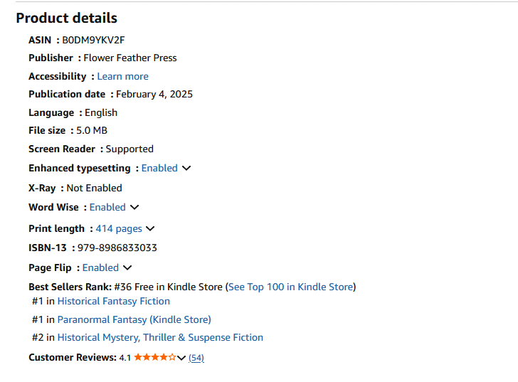 I was a Bookbub free reads yesterday, and today Immortal Gifts is #1 in Historical Fantasy Fiction, #1 in Paranormal Fantasy, and #2 in Historical Mystery, Thriller & Suspense Fiction in the US.
